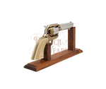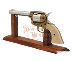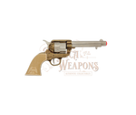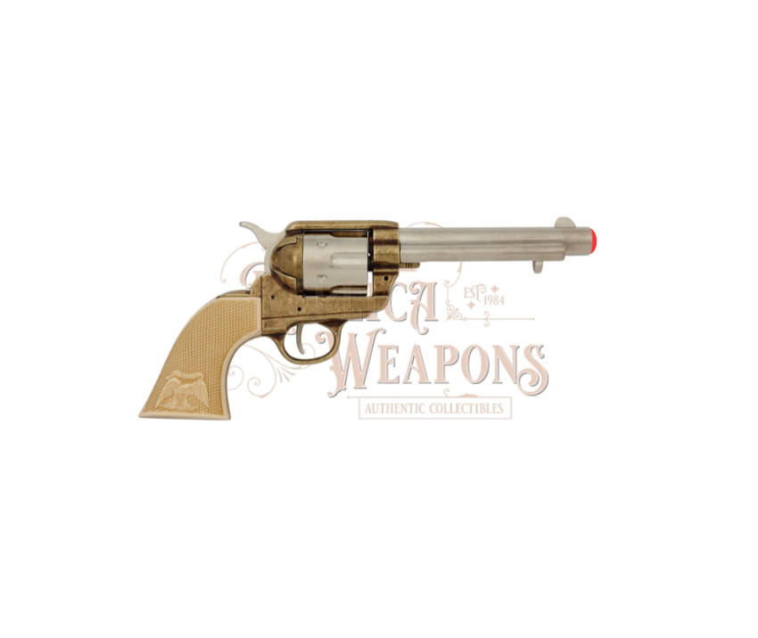 Revolver reproduction 5½" made of metal with plastic grips in ivory imitation, with simulated mechanism of charge and firing and rotating drum.