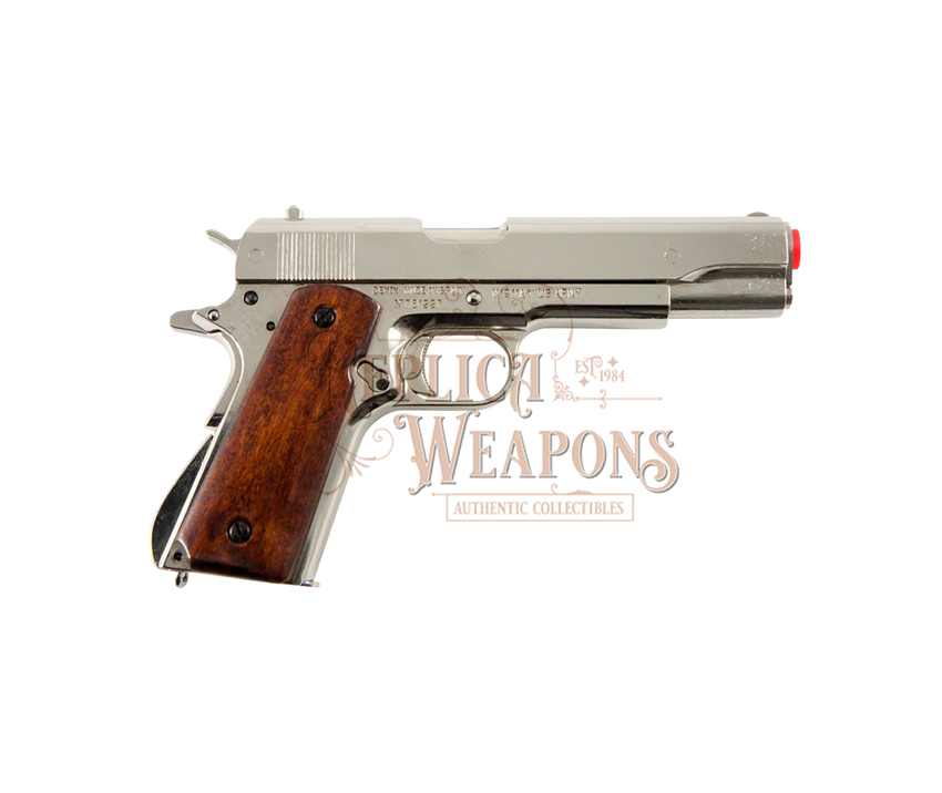 Colt Government .45 Nickel & Wooden Handle (Automatic Pistol M1911A1)