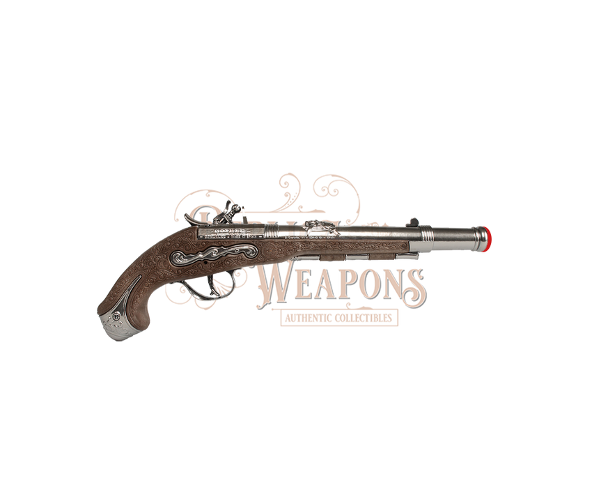Pirate Buccaneer Flintlock Pistol - 1-Shot - Diecast Metal and Plastic - Brown/Nickel with Box