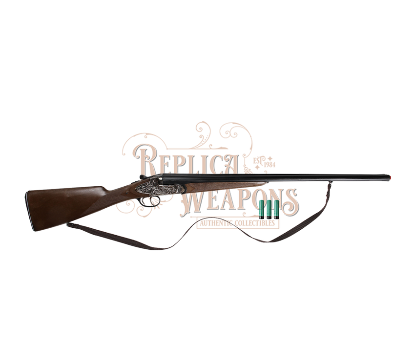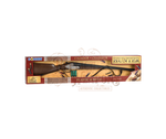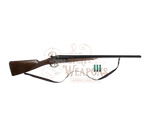 Parallel metal hunter shotgun, plastic barrel and 3 cartridges. Uses single-shot caps. Made in Spain.